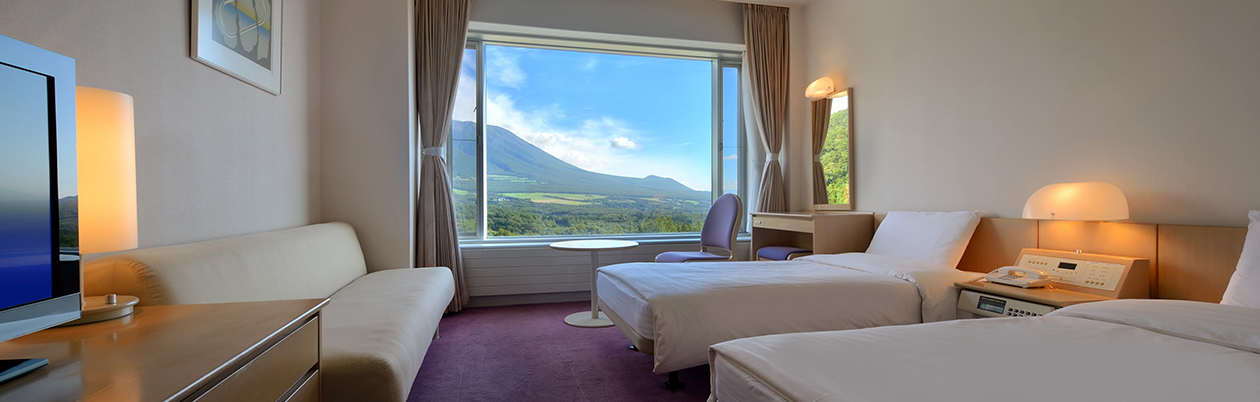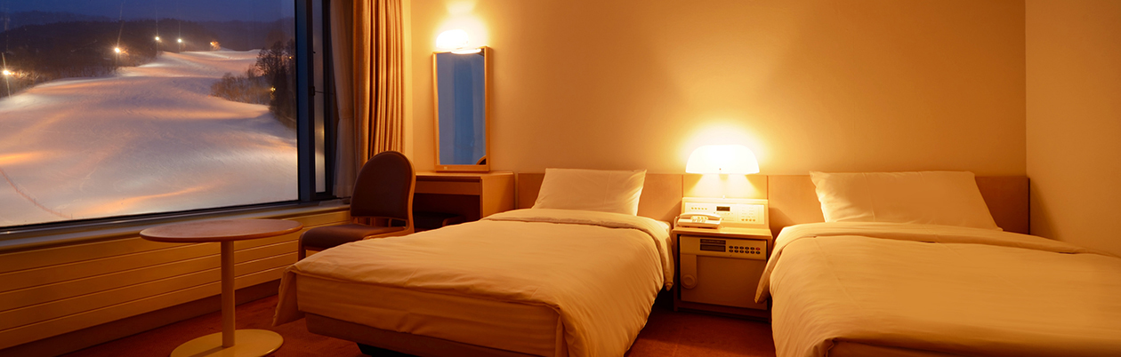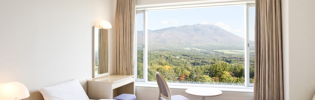 白を基調としたコンパクトな22平米のお部屋です。岩手山眺望客室とゲレンデ眺望客室があります。1名さま利用の場合はシングルユースとなります。エキストラベッド(ソファーベッド)利用で最大3名さままでご利用いただけます。