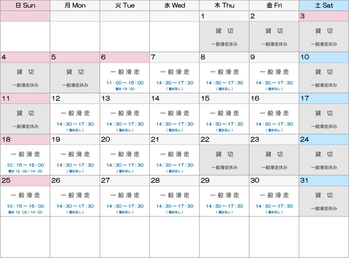 | 滑走貸靴セット | 滑走料のみ | 貸靴料 | 付添観覧 | |