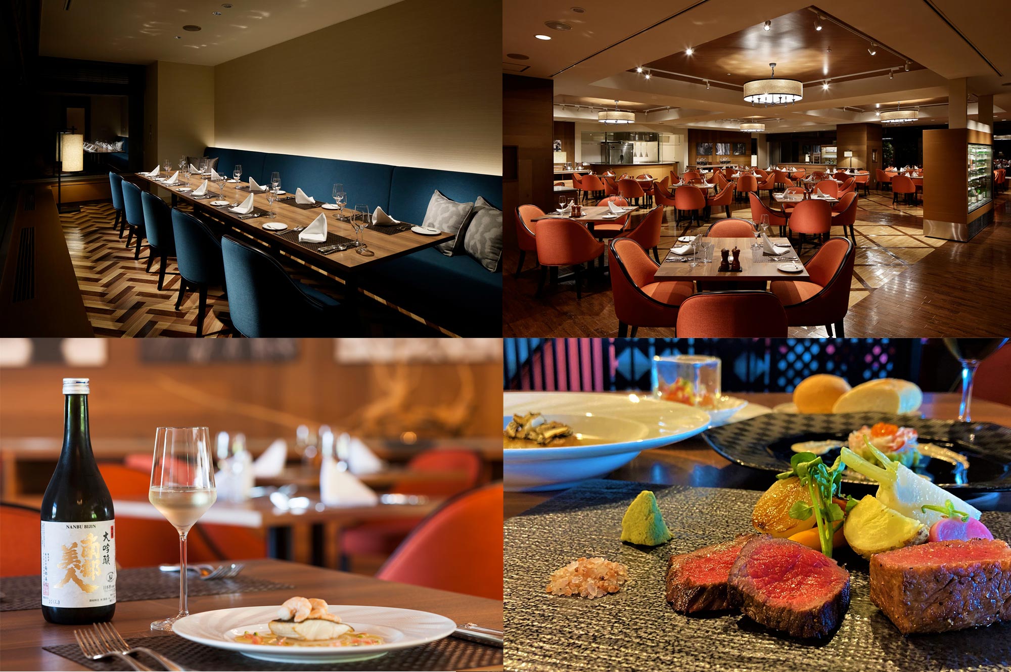 今夜のディナーは、木の温もりと南部鉄器のモチーフに彩られたモダンな空間が広がる「レストラン こぶし」で。岩手のブランド米「銀河のしずく」をはじめ、わさびを絶妙に効かせた岩手産前沢牛や短角牛のメインディッシュ、地元の吟醸酒「ひと雫」を使ったソース添えの魚介料理など、地元食材をふんだんに使った特別なコース料理をご用意しています。