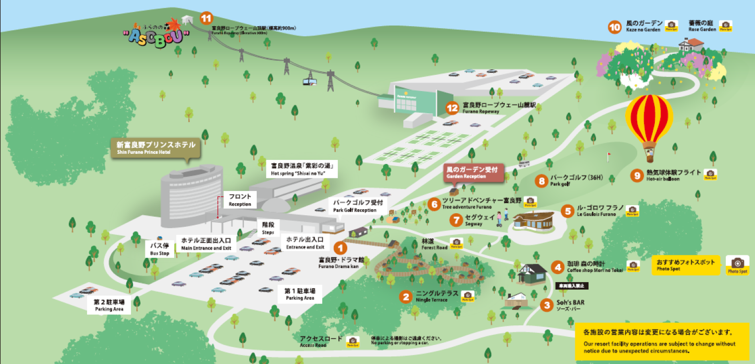 | 時間 | 8:00A.M.~3:00P.M.(富良野ロープウェー運行は7:00A.M.より) |