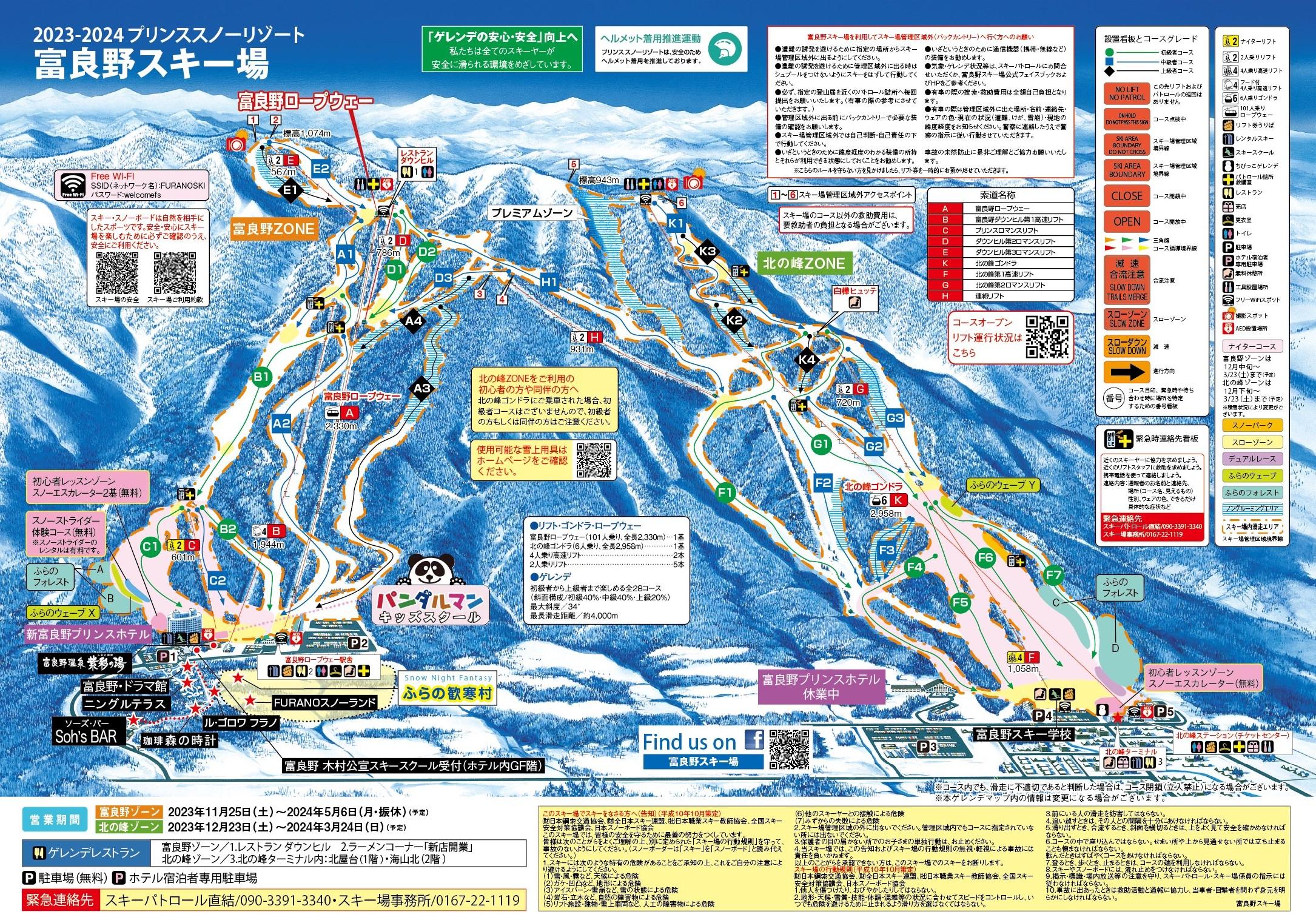 富良野スキー場のゲレンデ・コース・リフト運行情報をご案内いたします。