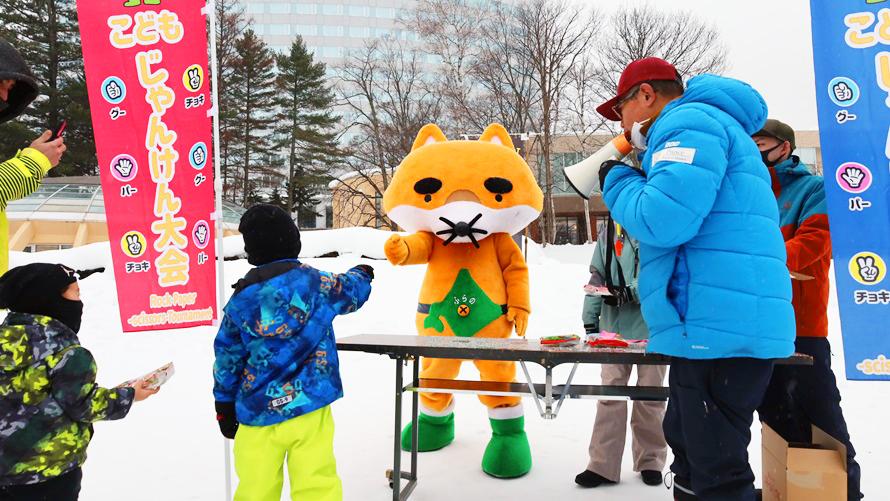 富良野スキー場公式キャラクター「ふらのん」とじゃんけん大会!勝者の方にはうれしい景品をプレゼント!