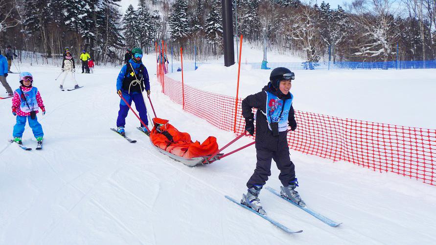 スキー場の安全を守るスキーパトロール隊。本物のスキーパトロール隊員とゲレンデを滑りながら安全を確認したり、救命ボート搬送を実際に行ったりと、雪上で職業体験ができます。