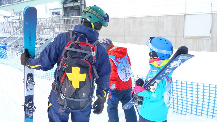 本物のスキーパトロール隊員と一緒に「ビーコン」などを使って遭難者を救助する職業体験ができます。