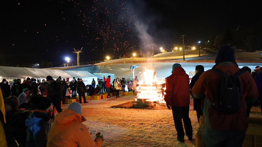 富良野スキー場を舞台に開催される冬の一大イベント。会場内の屋台や縁日コーナーでは地元食材を使ったメニューが並び、スノーラフティング体験やラフティングボートに乗って速さを競う大会なども開催。初日の夜には、冬の夜空に広がる花火の打ち上げがあります。富良野の伝統芸能、弥栄太鼓(いやさかだいこ)の迫力ある演奏も予定しておりますのでお楽しみに!