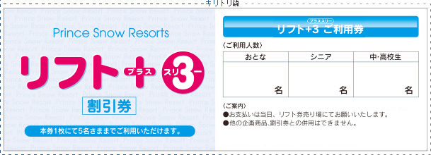 クーポンをプリントアウト(白黒可)したものにあらかじめご利用人数をご記入のうえ、スキー場リフト券売り場にご提出ください。