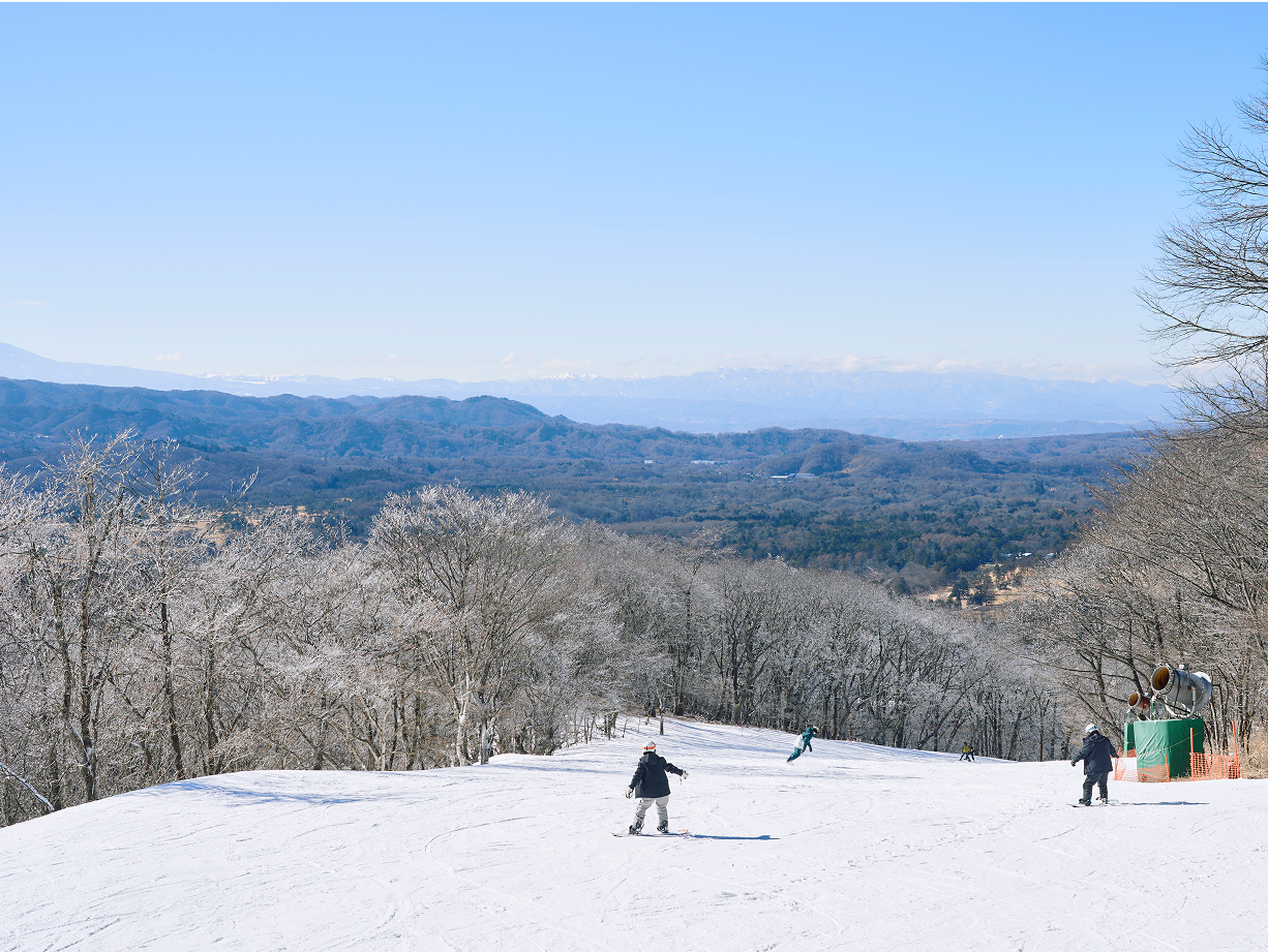 人工造雪機&降雪機による豊富な積雪を誇るゲレンデは、雪不足の心配がございません。また、晴天率の高さも当スキー場の魅力です。【総滑走距離:7,389m】