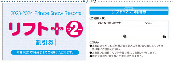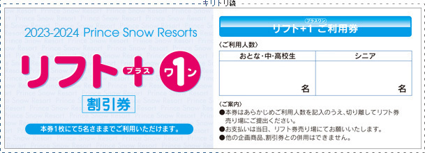 クーポンをプリントアウト(白黒可)したものにあらかじめご利用人数をご記入のうえ、スキー場リフト券売り場にご提出ください。