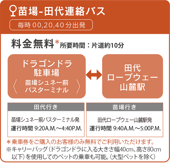 • ※苗場ドラゴンドラ山麓駅での乗車券の販売は行いません。