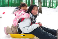 お子さまにとって、初めての雪遊び体験から自然(雪)を体と心でふれることにより新たな発見ができます。