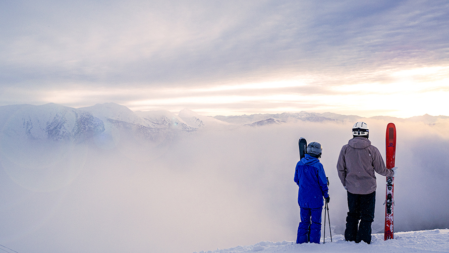 ぐっと冷え込んだ朝一番の山頂までスノーモービルを使って送り届けます。