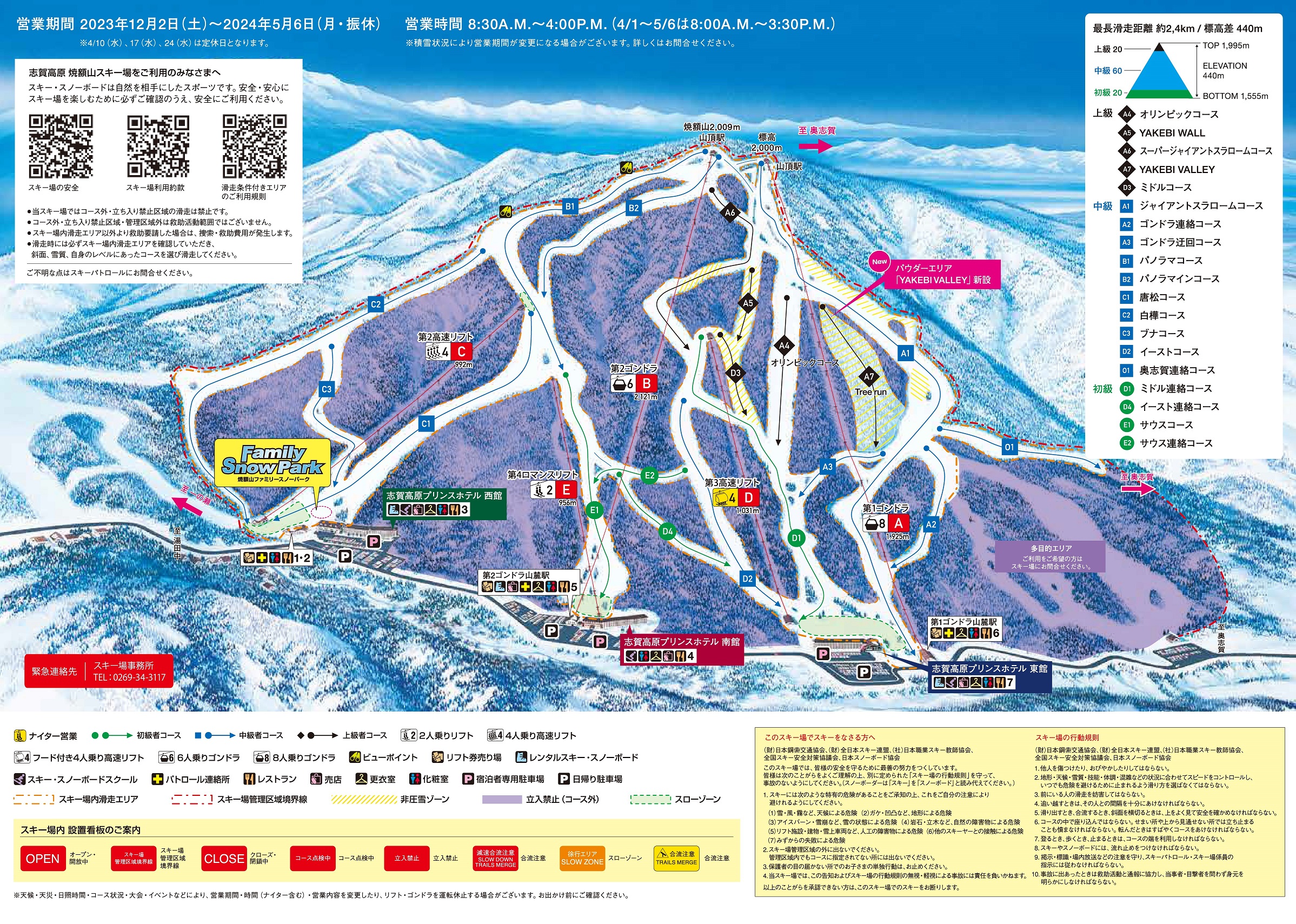 焼額山スキー場 管理事務所 0269-34-3117(8:00A.M.~5:00P.M.)
