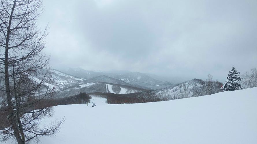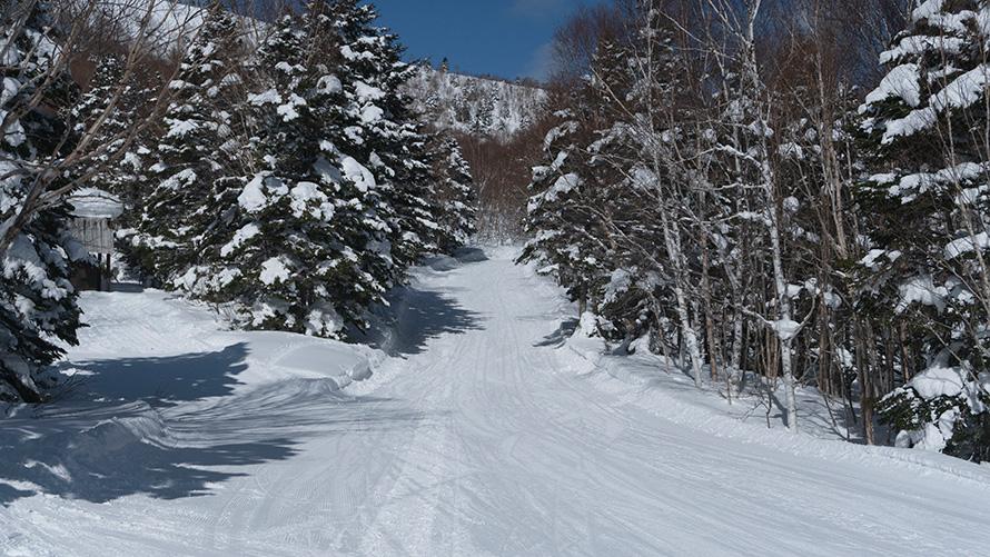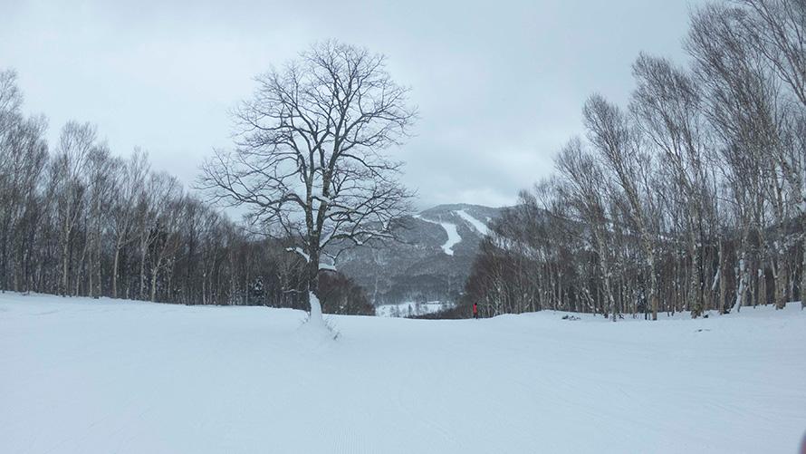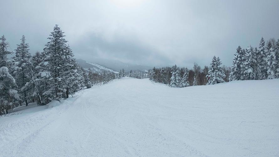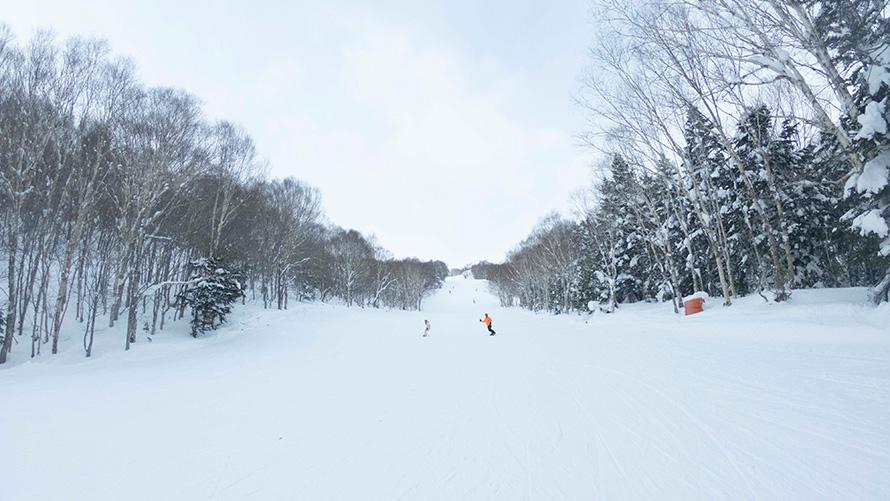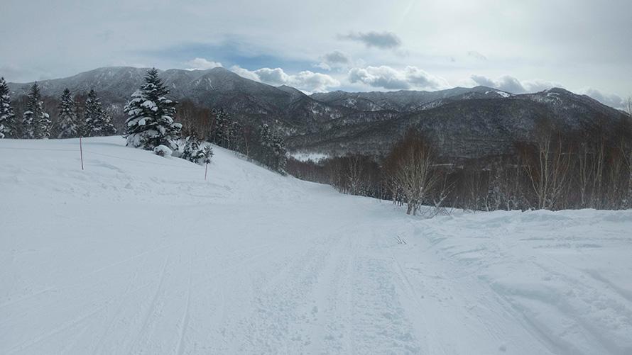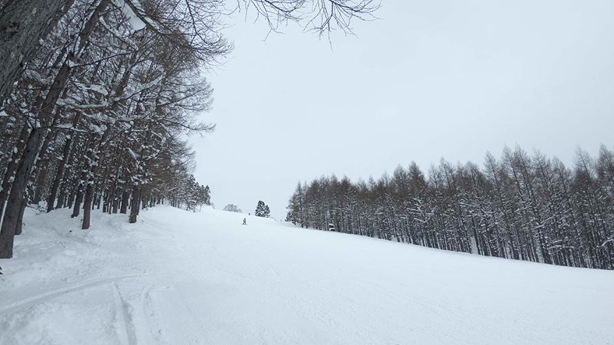 新雪、コブコブのスリル満点のあとは広々としたイーストコースに連絡。(非圧雪コース)