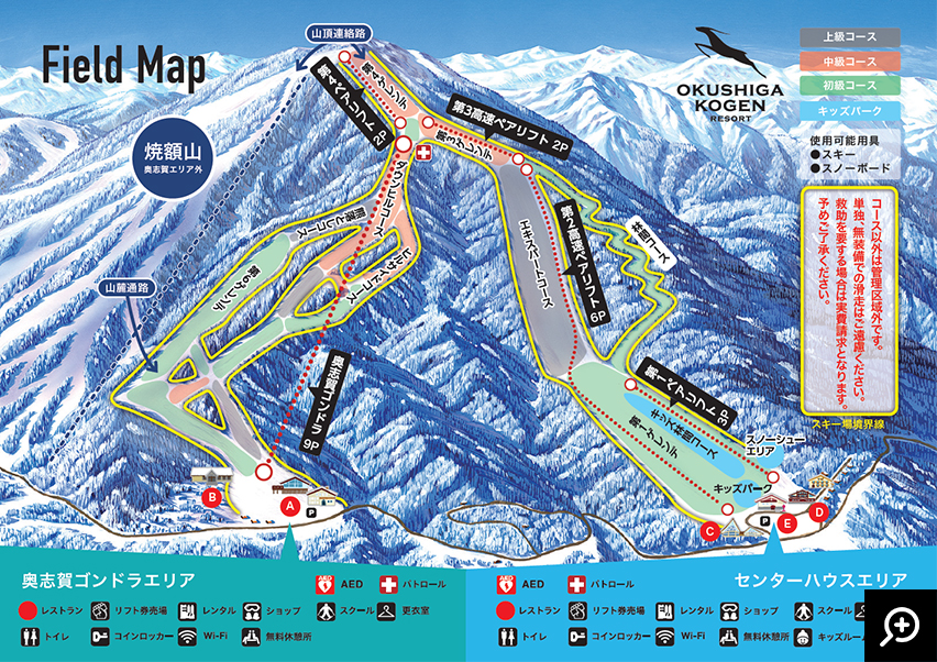 Groomed courses without a single trace; an enjoyable run surrounded by a silent forest; a powder outing with snow up to your waist. Snow quality, varied terrain and silence—snowfields that provide it all.