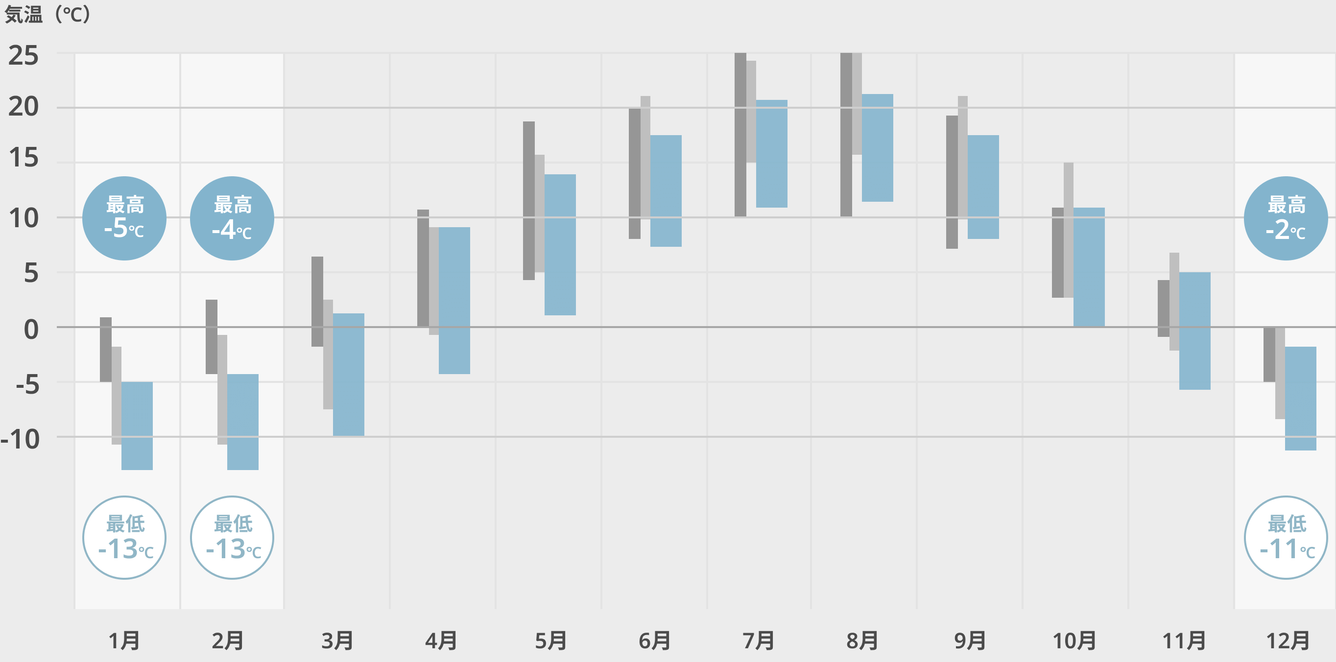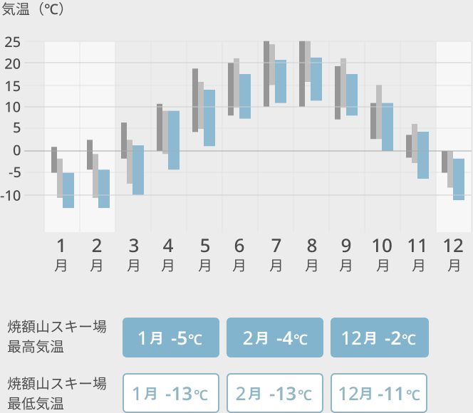 湿度が高いほど量は増す一方、雪質は悪化し、乾燥するほど雪質は良いが量が減るのが雪の特徴です。焼額山は程よく内陸に位置していることで、抜群の雪質と豊富な積雪量を両立させています。