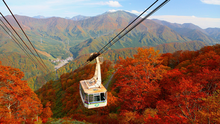新潟県越後湯沢 苗場ドラゴンドラ(苗場スキー場)と田代ロープウェー(かぐらスキー場)の紅葉状況や料金、営業案内、Web限定優待券はこちらです。日本一の苗場ドラゴンドラ&田代ロープウェーで新潟の秋を楽しもう!