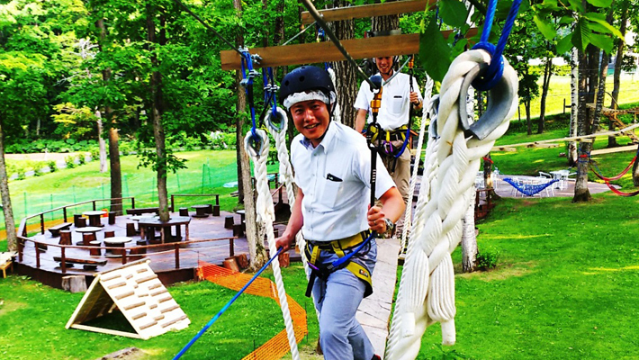 富良野の森に誕生したツリートレッキング。スリル満点の全19ステージ。