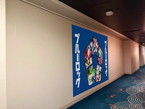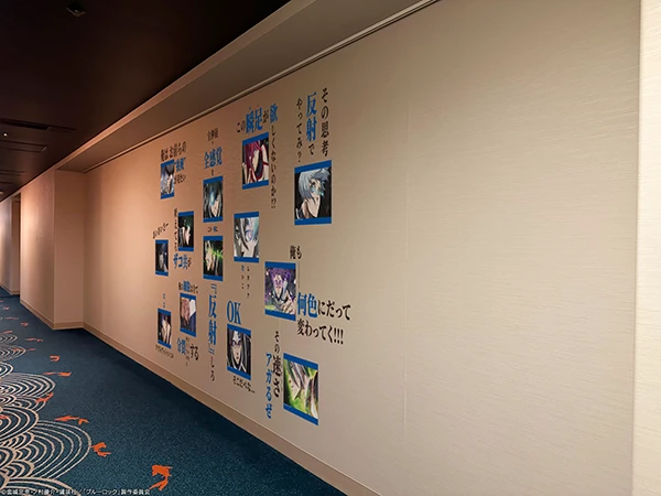 また、お部屋へと続く廊下には、第2期のキービジュアルや場面写を用いた展示があり
