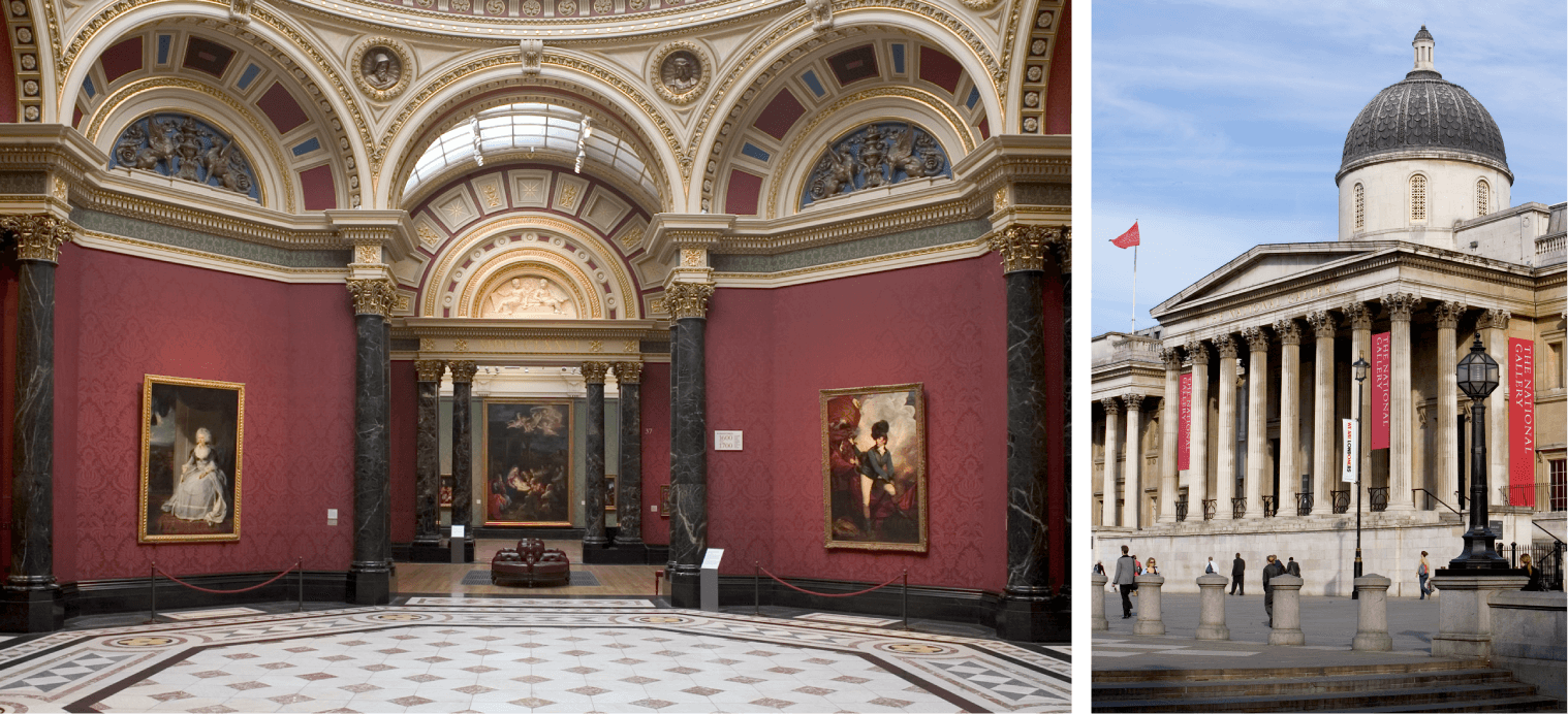 イギリスが誇る美の殿堂である国立美術館。ロンドンの中心部に位置しています。