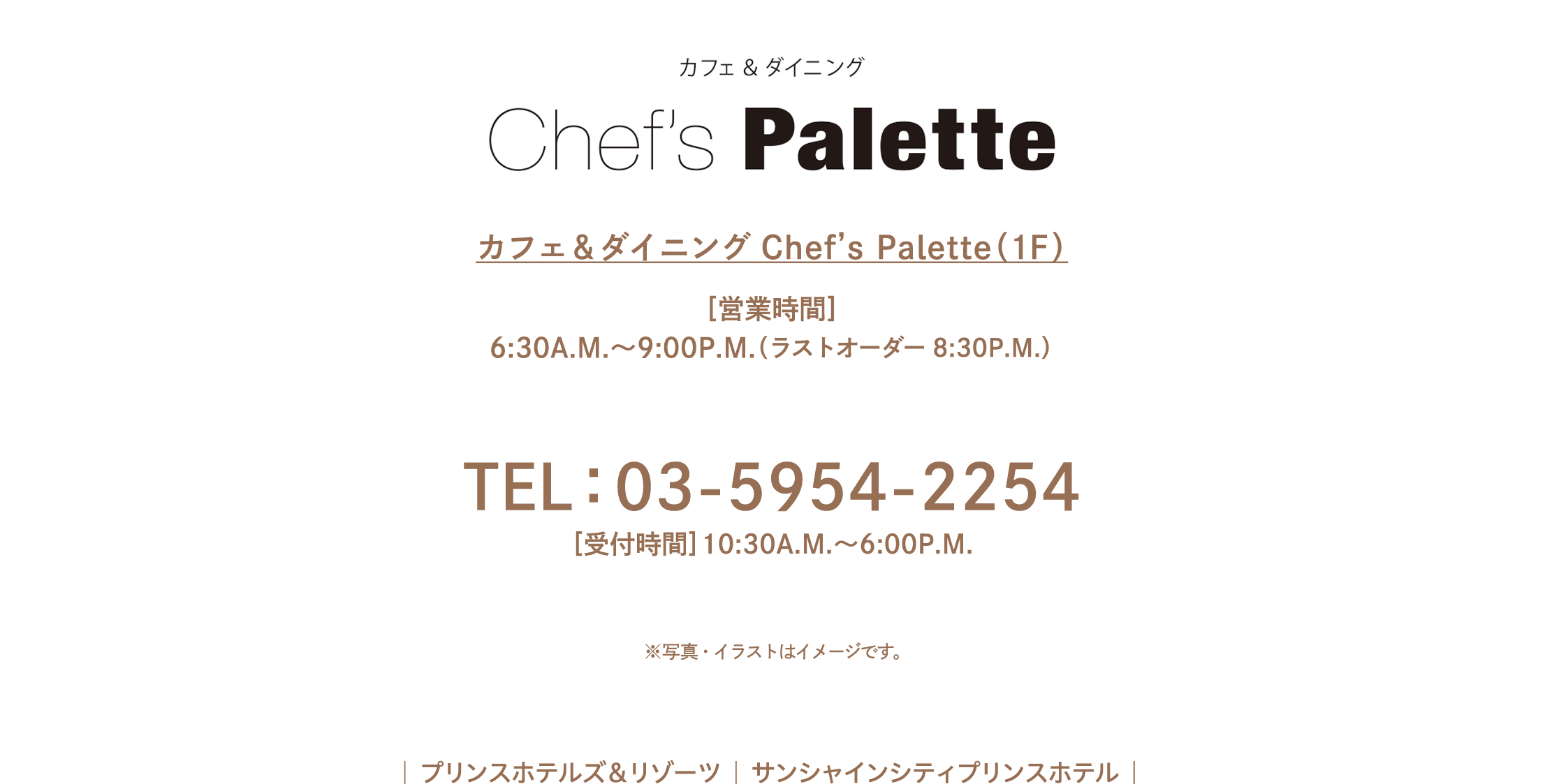 カフェ & ダイニング Chef's Palette プリンスホテルズ&リゾーツ サンシャインシティプリンスホテル カフェ & ダイニング Chef's Palette 03-5954-2254 プリンスホテルズ&リゾーツ サンシャインシティプリンスホテル