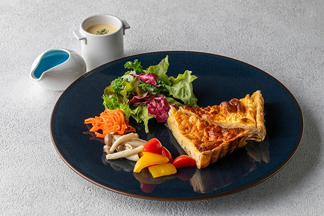 <使用材料>ニンジンマリネ/パプリカマリネ/ベーコンとチーズのキッシュ/コーンスープ ほか