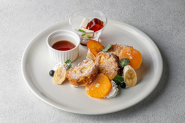 <使用材料>バケットのフレンチトースト/オレンジ/コーヒーゼリー/ミルクゼリー ほか