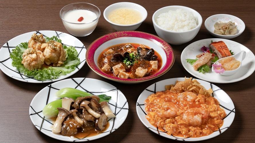 前菜・スープ・「選べるメイン料理2皿」、デザートには「杏仁豆腐」とお得なメニューが登場。「選べるメイン料理」は週替わりでご用意いたします。