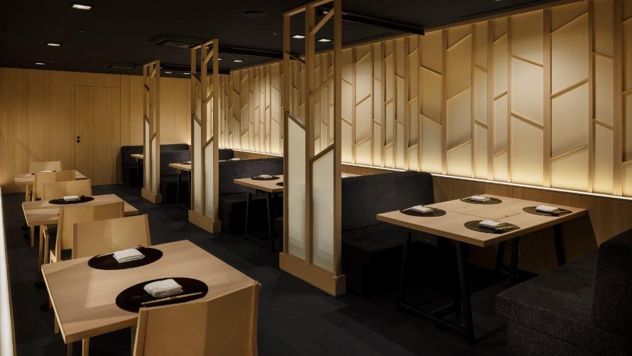 店名の由来でもある「武蔵野」の原生林の木立をイメージし、和食専門店本来の和の情緒と趣に“洗練さ”が備わった和モダンで落ち着いた雰囲気の店内で、看板メニューの米沢牛やスーパーゴールデンポークを使用したお食事をお楽しみいただけます。