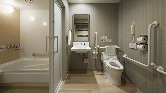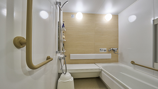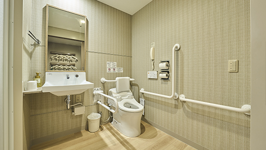 バリアフリー仕様のお部屋です。可動式のベッドも1台備えております。また、各所に手すりも設置しており、おひとりさまやご同伴者さまとのご利用でも、安心してお過ごしいただけるお部屋です。
