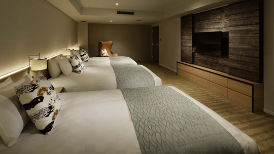 ご友人やご家族でのご宿泊におすすめのベッドを4つ備えた広々としたお部屋で、ゆったりお過ごしいただけます。