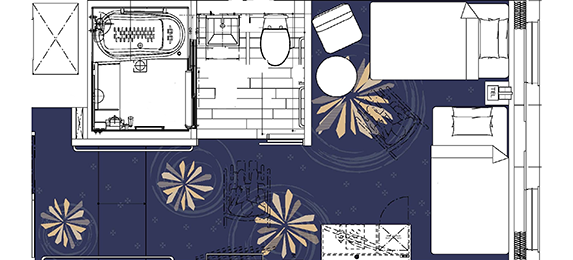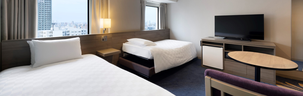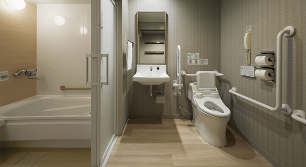 バリアフリー仕様のお部屋です。可動式のベッドも1台備えております。また、各所に手すりも設置しており、おひとりやご同伴者さまとのご利用でも、安心してお過ごしいただけるお部屋です。