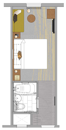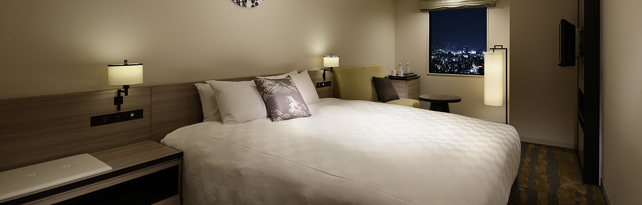 カップルやご友人、おひとりでもゆったりとご利用いただける広々としたベッド を備えたお部屋です。