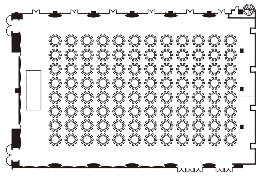1,837㎡の広さを持ち、単独でも2000名さままでご利用可能な宴会場。