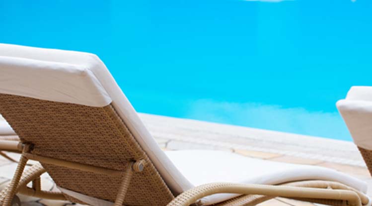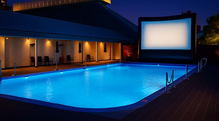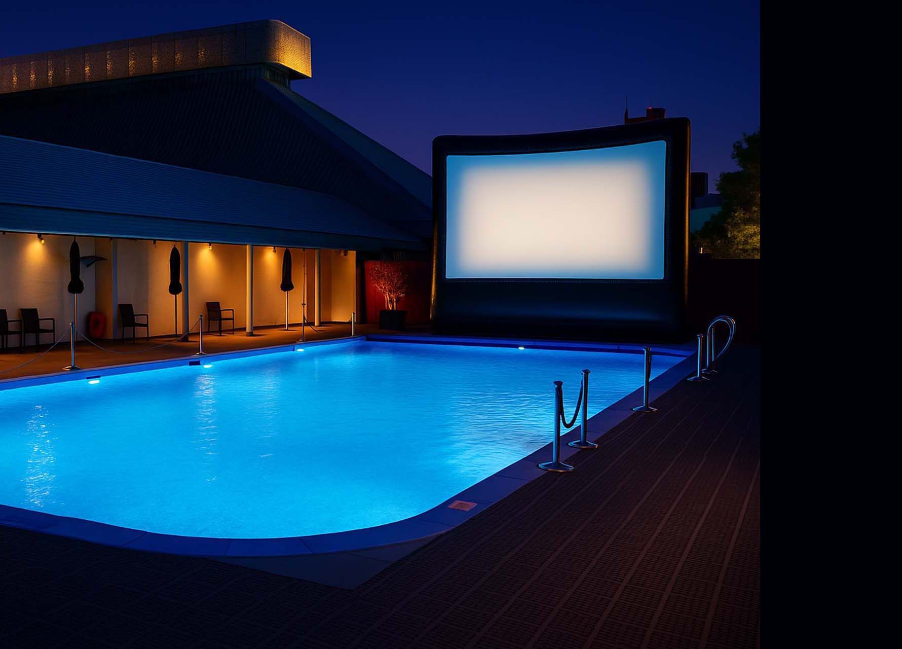 プールサイドでシネマ作品を堪能。水にゆられながらリラックスするひとときを。