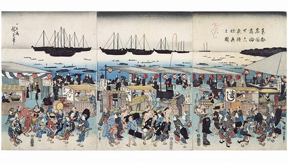 江戸時代、旧暦の1月と7月の26日の夜に、高輪で行われていた月が出るのを待って拝む行事。「二十六夜待ち」と呼ばれ、見晴らしのよい高輪では、多くの人が集まり月を待ちながら、屋台で飲んだり食べたりして楽しんだ様子が複数の風景画に残されています。現代風にアレンジされた高輪ならではの月待ちの文化。どこか懐かしい別世界をご体験ください。