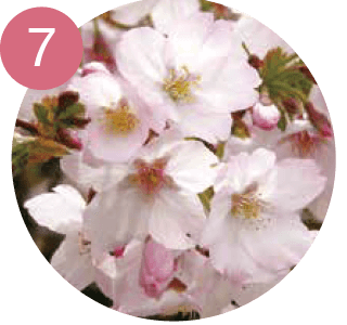 伊豆大島が由来とし、花が白く大輪で、桜の中では芳香が強め。