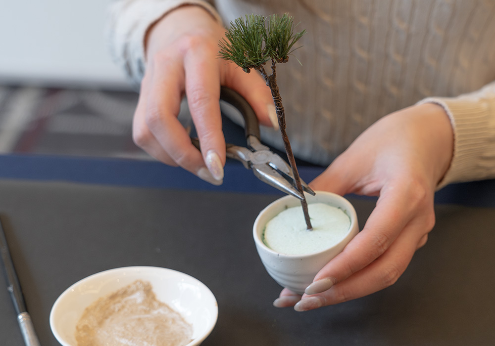 松柏志(しょうはくし) 人工盆栽を50年以上作り続けた、現存する協会の中で日本最古の協会に蓄積された技術や想いを継承。本物の盆栽では難しい、人工ならではの桜や紅葉など、松だけにとどまらない様々な種類の作品制作を手掛ける。既製品だけではなくオーダーメイドでの制作も行う。