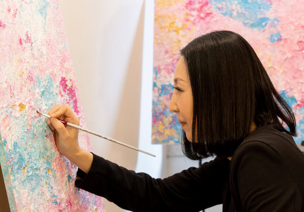 - アーティスト・ファッションデザイナーとして活躍する西村有紀子氏によるアートを展示いたします。