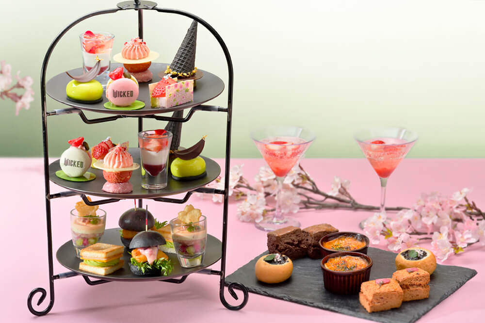 - 映画『ウィキッド ふたりの魔女』と春のアフタヌーンティーのコラボレーション。ピンクとグリーンカラーを中心に、作品の世界観を表現する色彩豊かなメニューをお楽しみください。