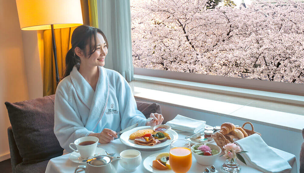窓一面に広がる桜景色を満喫できるのは、この時期だけの特別なひととき。お部屋の窓いっぱいに広がる桜を眺めながら、優雅なご朝食を。うららかな陽気に心躍る、高輪の春の訪れをお楽しみください。