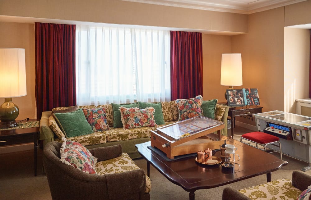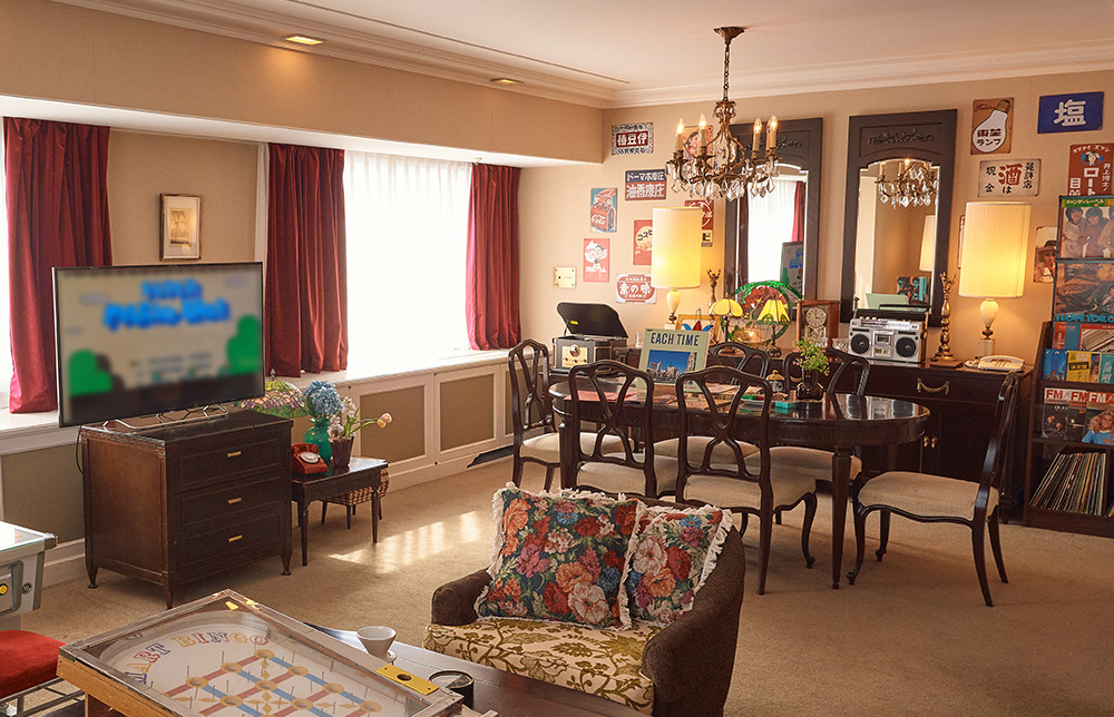 昭和時代の温かみとレトロな魅力を存分に感じられるコンセプトルーム。開業当時の趣をそのままに、多くのVIPにご利用いただいてきたスイートルーム「プリンセススイート」を舞台に、懐かしいデザインやアイテムを取り入れ、まるで昭和へタイムトリップしたかのような空間を演出。