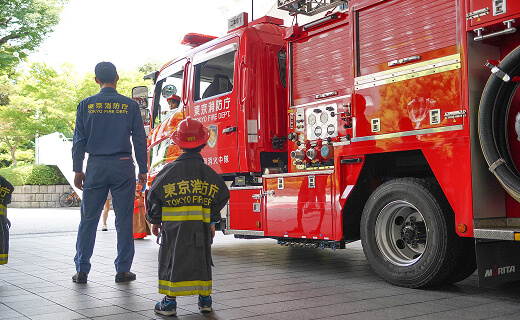 消防車や、パトカー白バイの警備車両乗車など特別体験を。