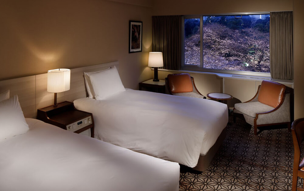 ゆったり楽しむお花見 - ご宿泊された方だけが楽しむことのできる、大迫力の桜景色。夜、カーテンを開けると、幻想的な夜桜と竹あかりの光景が広がります。