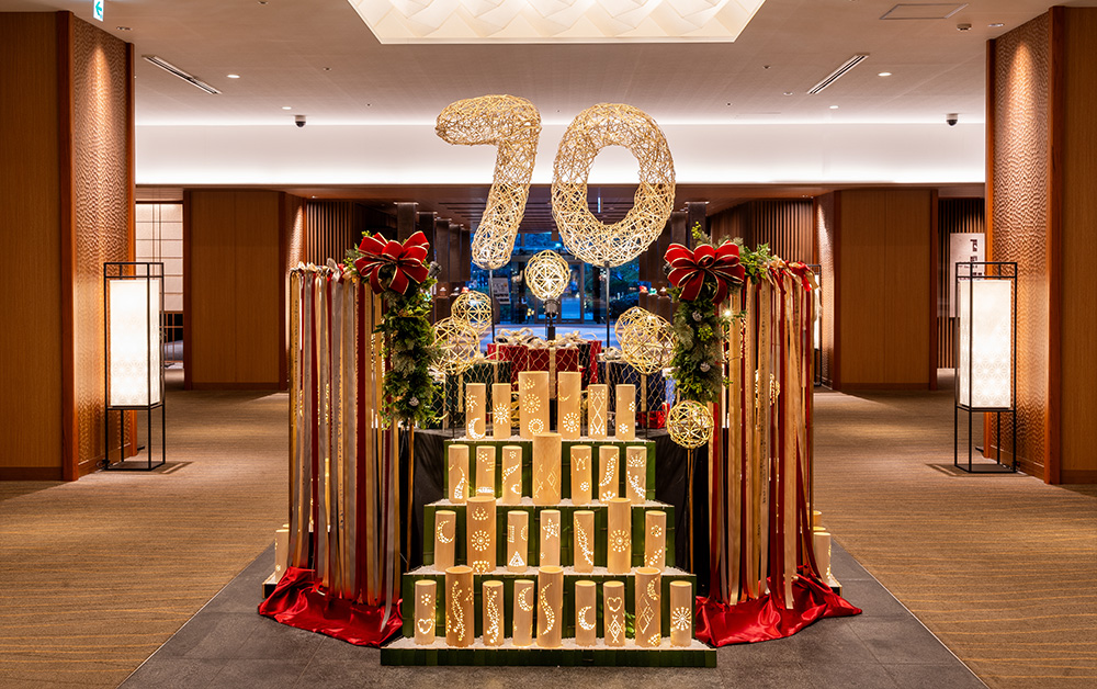 開業70周年記念 クリスマスロビーアート - 今夏「竹あかり親子体験ワークショップ」へご参加いただいた皆さまが手がけた竹あかりを使用した、ホテル開業70周年を記念したロビーアートがクリスマスバージョンに生まれ変わります。