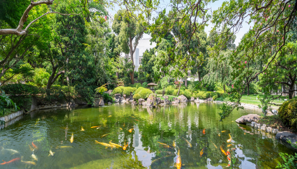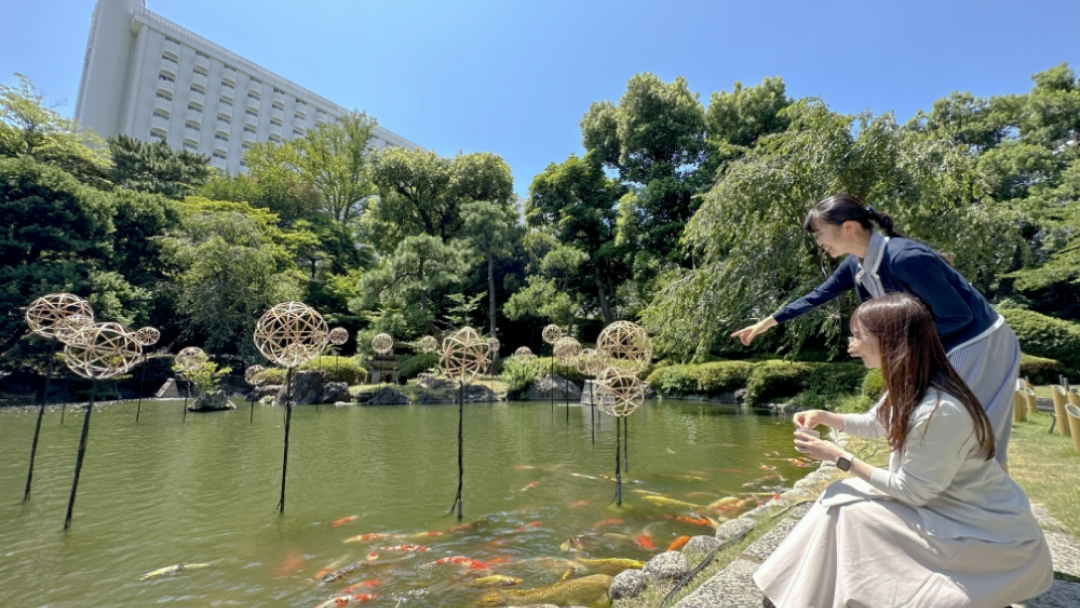 敷地内には約20,000㎡に渡る日本庭園があり、その中心に位置する池では、鯉の餌 やり体験をお楽しみいただけます。さわやかな風が流れる都心とは思えない絶景空間で、ゆったりとした高輪時間をお過ごしください。