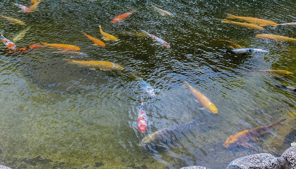 「鯉の餌やり体験」