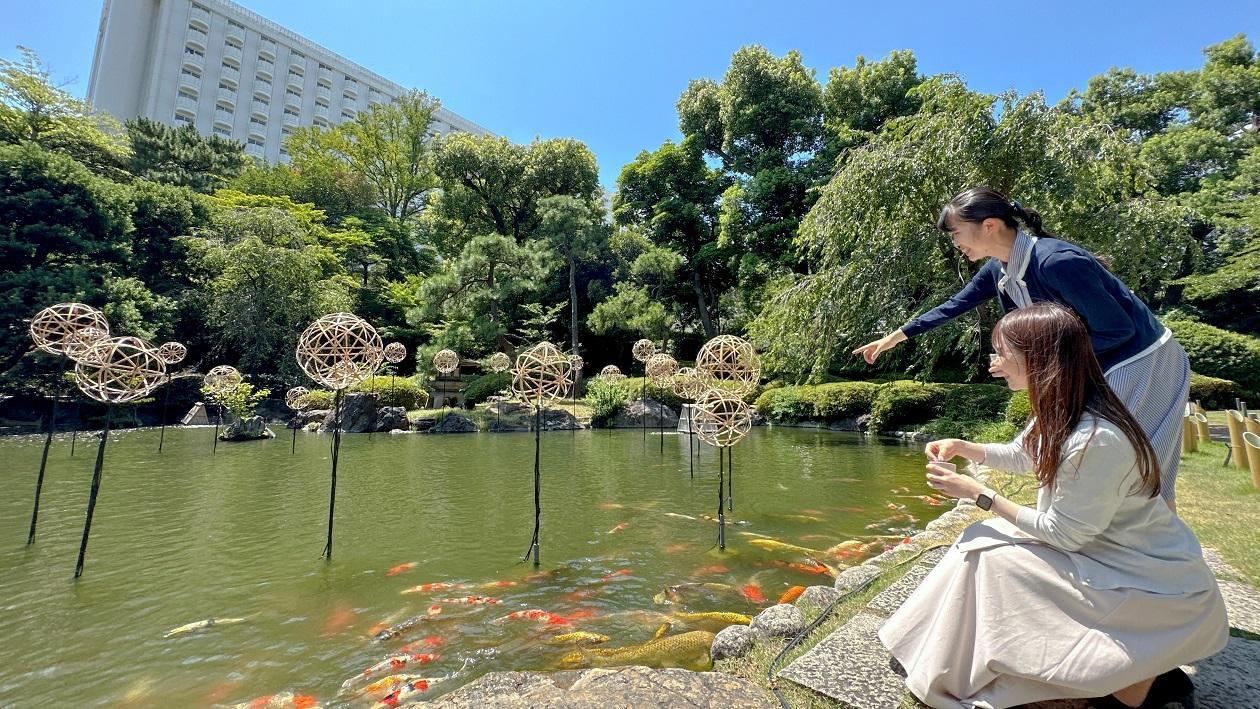 緑に囲まれた日本庭園の池で、鯉の餌やりをお楽しみいただけます。