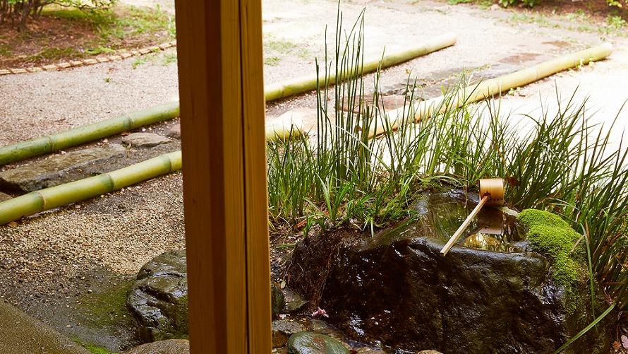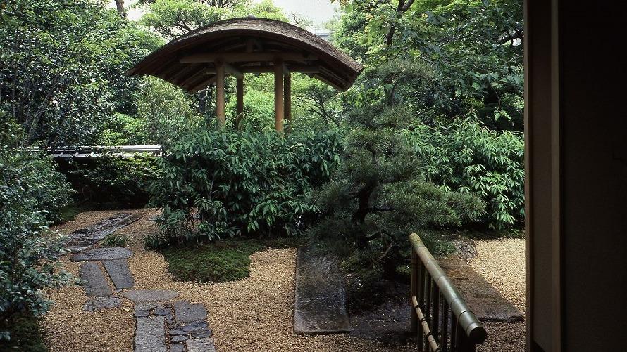 皇居新宮殿の庭園も手掛けた造園士、楠岡悌二氏が作庭した風光明媚な日本庭園にひっそりと佇む。