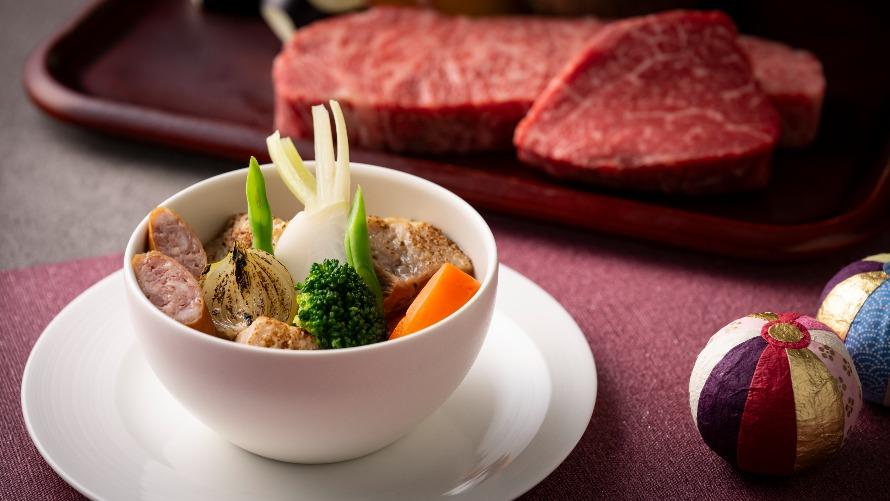 続くポトフは、東京しゃもと彩り豊かな東京野菜を合わせ、素材の持ち味を活かしたやさしい風味が体に沁み渡る一品です。