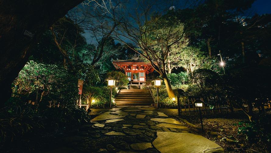 幻想的に照らされる夜の日本庭園散策をごゆっくりとお楽しみください。